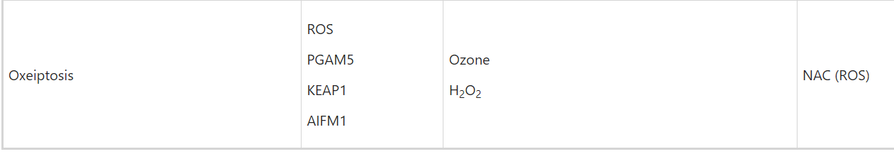 옥시토시스는 형태학적으로 세포 사멸과 유사한 세포 사멸이 특징입니다(그림 2O). 이 과정에는 세포 ROS 센서, 항산화 인자 KEAP1, 포스파타제 PGAM5, 세포 사멸 촉진 인자 AIFM1의 상호 작용이 포함됩니다 [94]. 과활성화된 KEAP1은 Keap1-PGAM5와 관련된 상호 작용 경로를 통해 Ser116에서 AIFM1을 탈인산화함으로써 NFE2L2와 무관한 방식으로 H2O2에 의한 옥시토시스를 매개합니다(그림 3O). 옥시토시스는 ROS 또는 바이러스 병원체와 같은 ROS 생성 물질로 인한 염증을 예방하는 데 중요합니다.