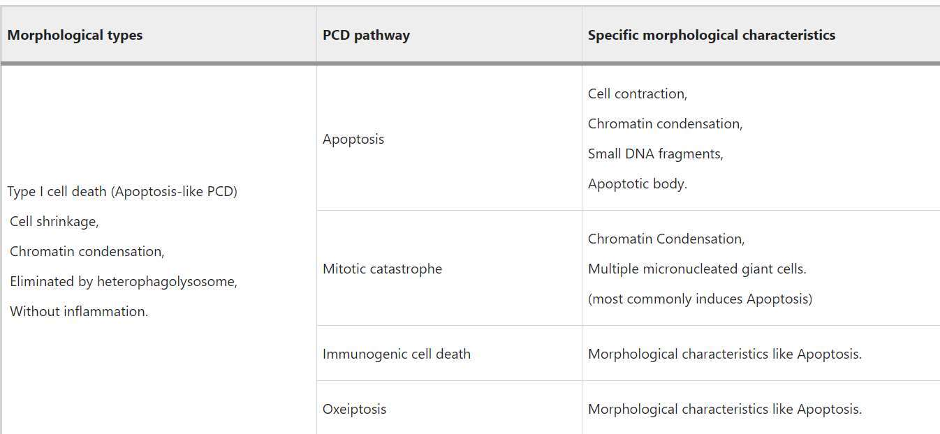 PCDs present visible morphological changes, Schweichel et al. classified PCD into three distinct morphological types based on morphology combined with the mechanism of cell death [1, 2]: