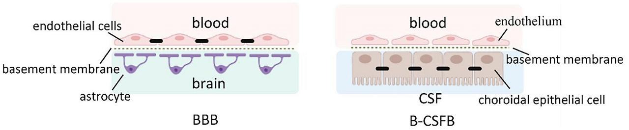 각각 혈액뇌장벽(BBB)과 혈액-CSF 장벽에 의해