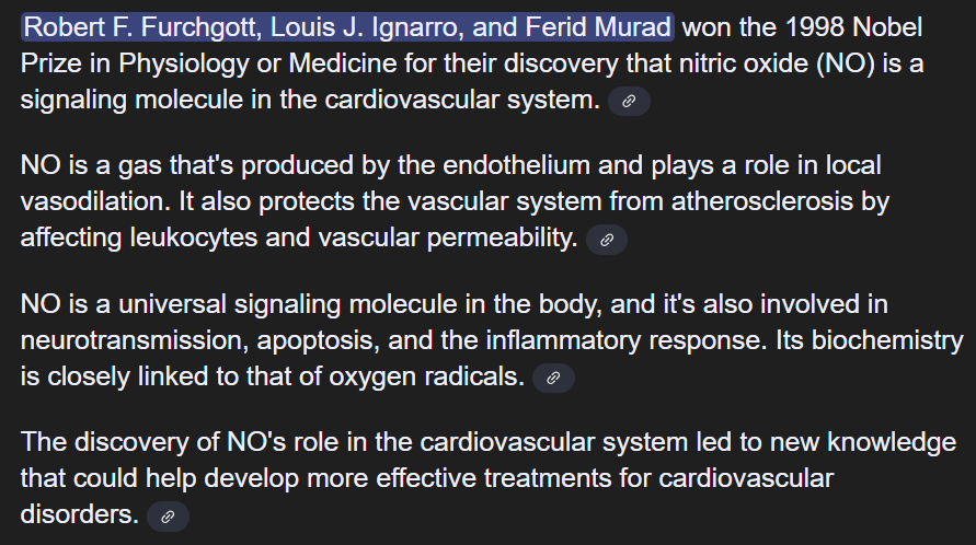 그 이후로 산화질소가 생물학적 작용제로서 발견되고