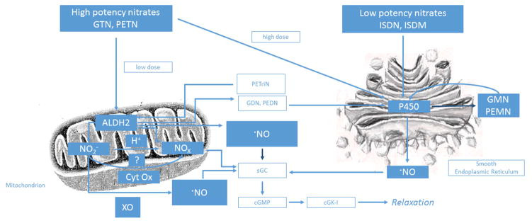 Keywords: nitroglycerin, nitrate, nitric oxide, soluble guanylyl cyclase, nitrate-nitrite-NO pathway, angina