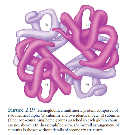각 소단위는 1개의 산소분자를 운반할 수 있다. 이 책에서 배우게될 다른 다량체 단백질들로는 세포내외로 작은 용질들의 이동을 용이하게 하는 원형질막에 구멍을 만드는 역할을 하는 채널이 있다. 많은 단백질들의 1차구조(아미노산 서열)는 알려져 있지만, 3차원적 입체구조의 결정은 단지 일부만이 알려져 있다. 폴리펩티드 사슬의 접힘에 영향을 미칠 수 있는 복합요인때문에 1차 아미노산 순서로부터 단백질의 입체구조를 정확하게 예측하는 것은 아직 가능하지 않다. 그러나 단백질의 1차구조의 변화가 2차, 3차,4차 구조를 변화시키는 것은 명백하다. 이와같은 1차구조의 변화를 돌연변이(mutation)이라고 한다.