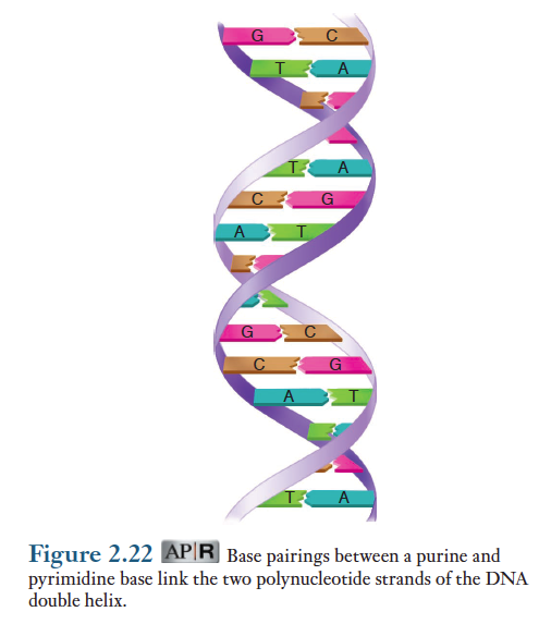 하나의 뉴클레오티드의 인산기는 사슬을 형성하기 위해 인접한 뉴클레오티드의 당과 연결되어 있고, 염기는 인산-당 골격의 측면으로 돌출해 있다. 그림 2.21