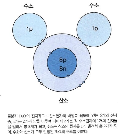 물분자 H20는 다음과 같이 나타냄. H-O-H