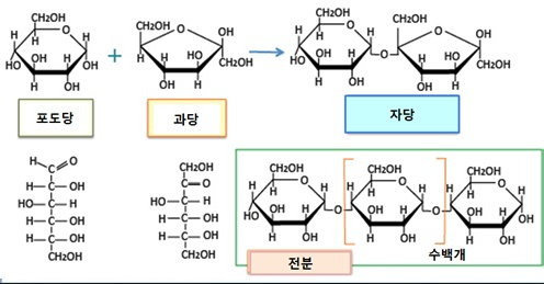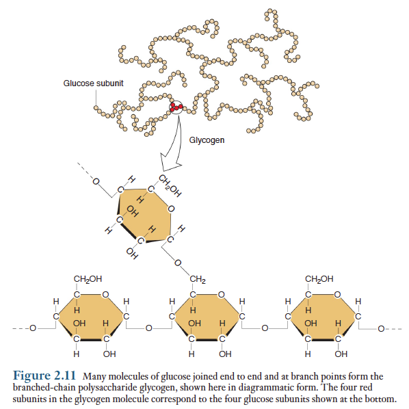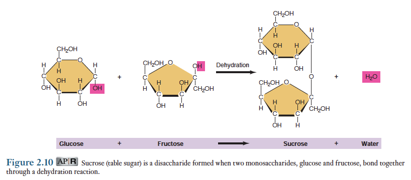 대부분의 탄수화물 특히 당으로 알려진 탄수화물은 단맛이 있다. 가장 단순한 당은 단당류이고, 가장 흔한 것은 포도당인데, 탄소가 6개인 분자(C6H12O6)이다. 포도당은 혈액에서 발견되는 주된 단당류이므로 흔히 혈당이라고 불린다. 단당류의 원자간 결합을 두가지 방식으로 나타내고 그림 2-9에 도식화하였다.