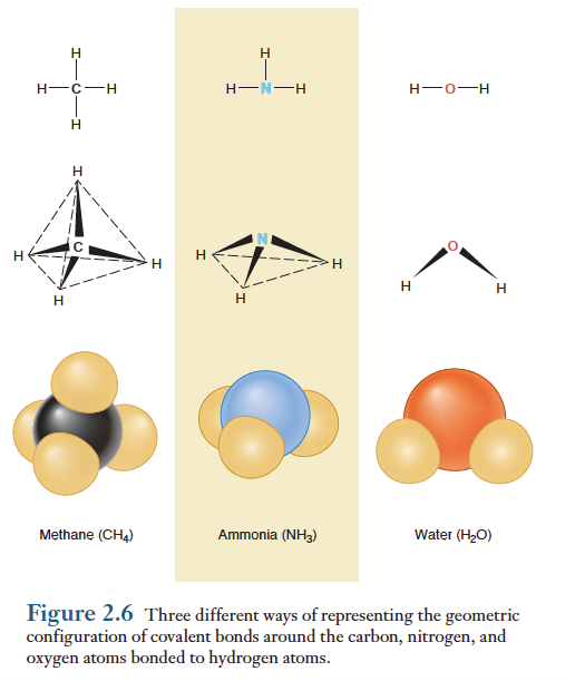 이미 언급한 바와같이 몇몇 원소의 원자들은 하나 이상의 공유결합을 형성할 수 있어서 2개나 그 이상의 다른 원자들과 동시에 결합되어 있음. 각 종류의 원자는 가장 바깥쪽 궤도의 전자수에 의존하는 특정 수의 공유결합을 형성함. 신체 내에서 가장 많은 네가지 원자에 의해 형성되는 화학결합의 수는 수소는 1개, 산소는 2개, 질소는 3개, 탄소는 4개임.