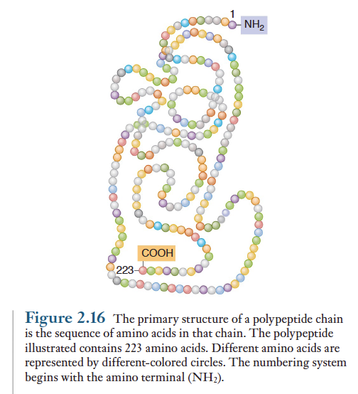 두가지의 변수가 단백질의 1차구조(primary structure)를 결정한다. 1) 사슬내의 아미노산의 수 그리고 2) 사슬을 따라 각 위치에 있는 아미노산의 특정한 형태. 그림