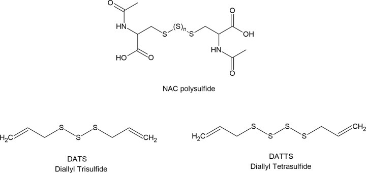 As discussed above, the disturbances in homeostasis of RSS, including H2S, persulfides and polysulfides are involved in aging and many different pathologies. For this reason, effective and safe precursors are being developed. It is impossible here to describe all of studied compounds to be used as H2S releasing agents or per- and polysulfide prodrugs. It is clear that inorganic sulfides and polysulfide salts, like Na2S and Na2Sn used commonly as experimental H2S and polysulfides donors are not suitable for use in in vivo studies due to fast and uncontrollable release of RSS, what is dangerous especially in the case of free H2S.