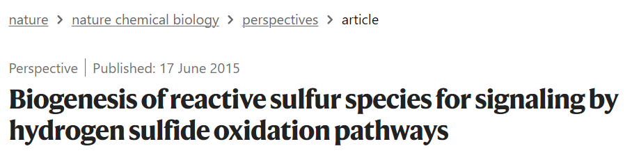 Keywords: hydrogen sulfide, persulfides, polysulfides, protein persulfidation, reactive sulfur species