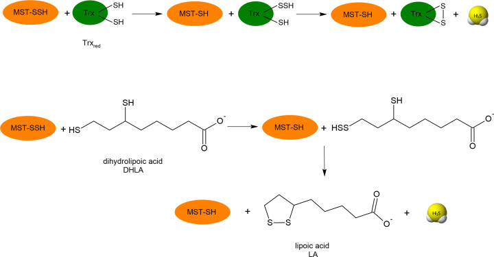 One of the most important mechanism of RSS action in biological systems is related to persulfidation of proteins. This reaction can be triggered by H2S if target -SH groups in proteins are reversibly oxidized to sulfenic acid or S-nitrosothiols. When the protein -SH groups are in reduced state, only persulfides or polysulfides can sulfhydrate target proteins. It is assumed that persulfides and polysulfides are regarded as more efficient persulfidating agents than H2S. As mentioned earlier, persulfides are also more active and safer sulfur species than H2S what makes them good candidates for sulfur redox signaling. However, due to their low stability it is not easy to use them directly for biological application. Therefore, some efforts have been made in making persulfide donors suitable for use in biological systems.
