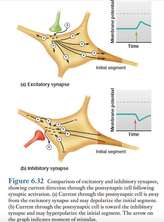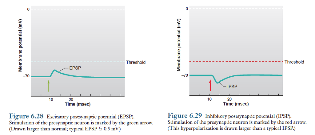 흥분성 시냅스에 있어서 신경전달물질에 대한 시냅스 후 반응은 탈분극으로 막전위를 역치에 가깝게 끌어올린다... 흥분성 시냅스후 전위(excitatory postsynaptic potential EPSP)..