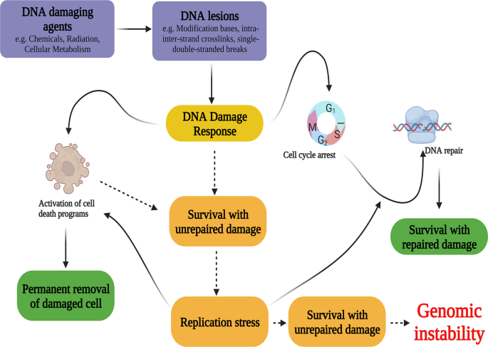 세포 노화라고 알려진 지속적인 증식 정지 상태를 겪습니다.