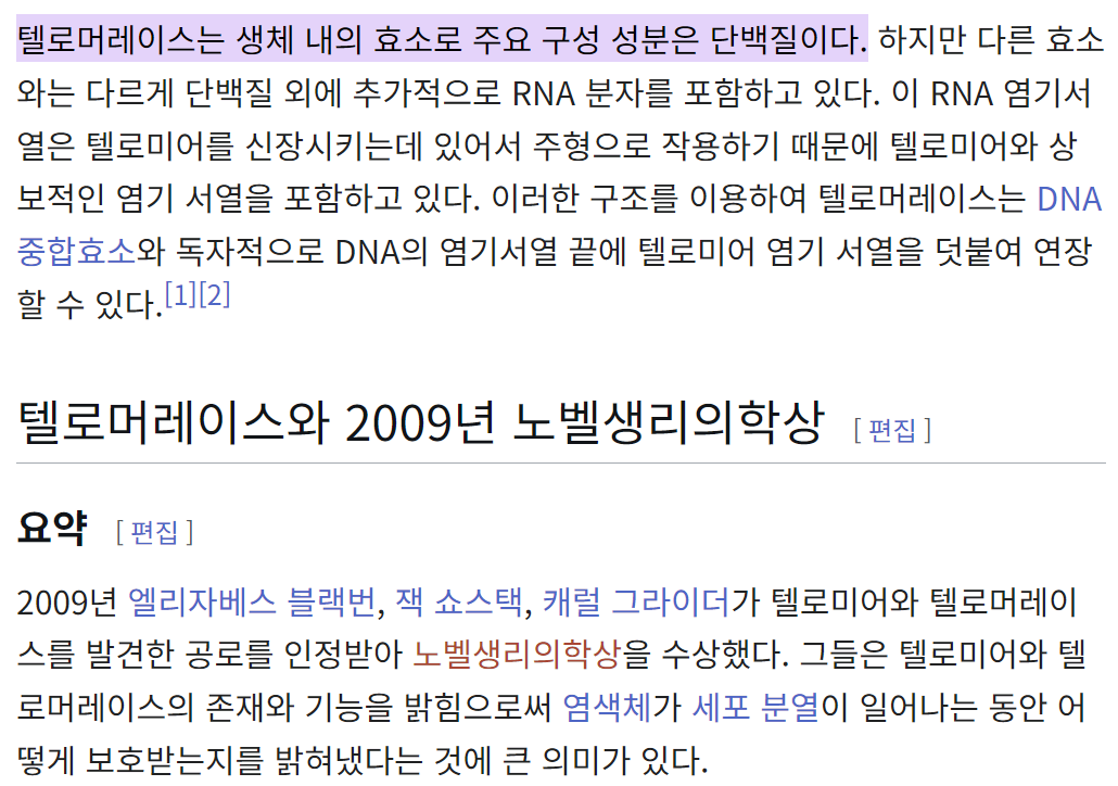 텔로미어는 염색체 끝부분을 보호하는 역할을 하는 반복적인 DNA 서열.