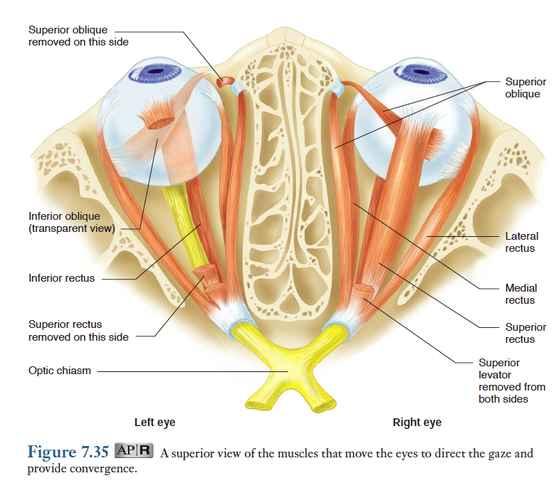 6개의 골격근이 각 안구의 표면에 붙어 있으면서 안구운동을 조절한다. 이 근육들은 빠르고 느린 두가지 기본운동을 수행한다.