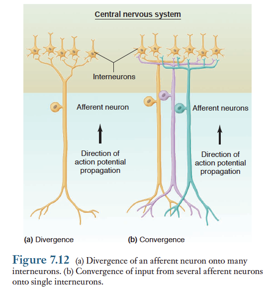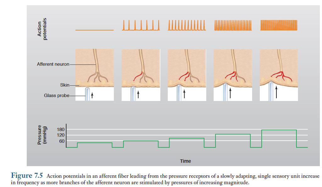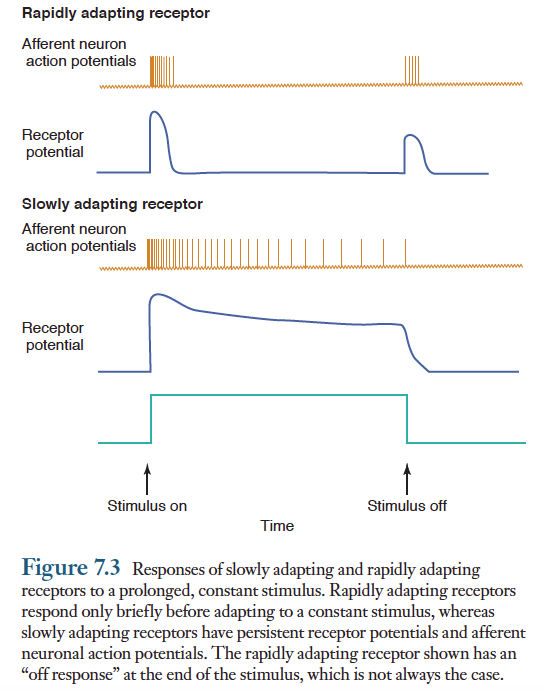 1) 구심성 뉴런은 감각수용기 메커니즘(적응현상 등) 및 구심성 경로에서 일어나는 처리과정에 영향을 받는다