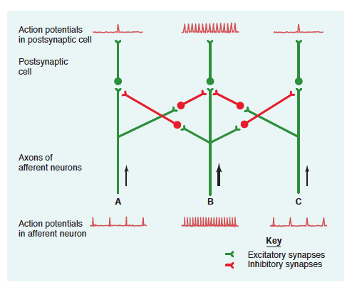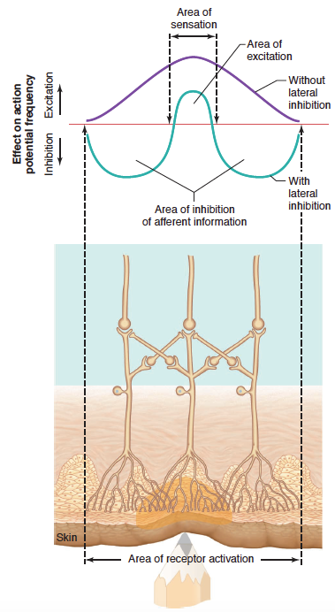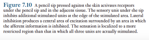 측면억제 현상은 일부 감각계에서 자극의 위치를 알려주는 중요한 역할을 한다. .. 측면억제는 정확한 위치 파악이 필요할때 가장 크게 사용된다.