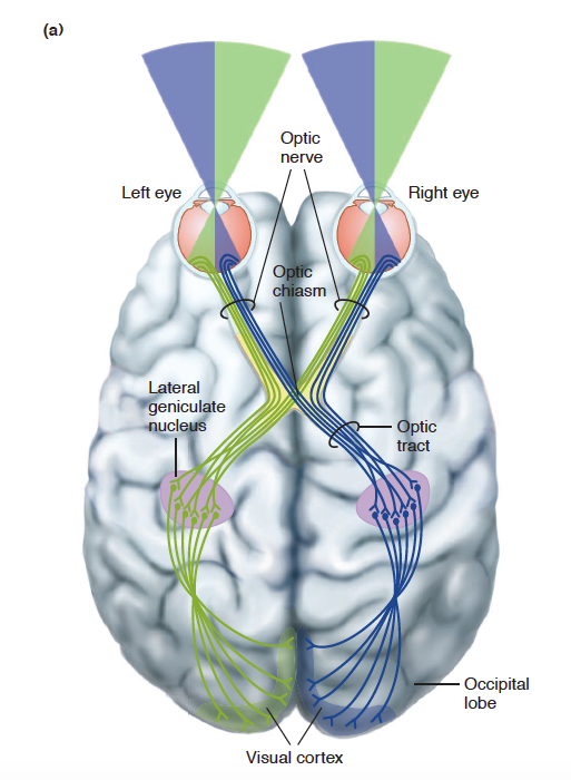 시각영상을 구성하는 시각요소들은 다중적인 평행경로들을 거쳐 시각계로 들어간다. 시각의 신경경로는 간상세포와 원추세포로부터 시작된다. .. 광신호들은 광수용기가 양극세포(bipolar cell)와 시신경절세포(ganglion cell)와 연결되어 활동전위들로 전환된다.