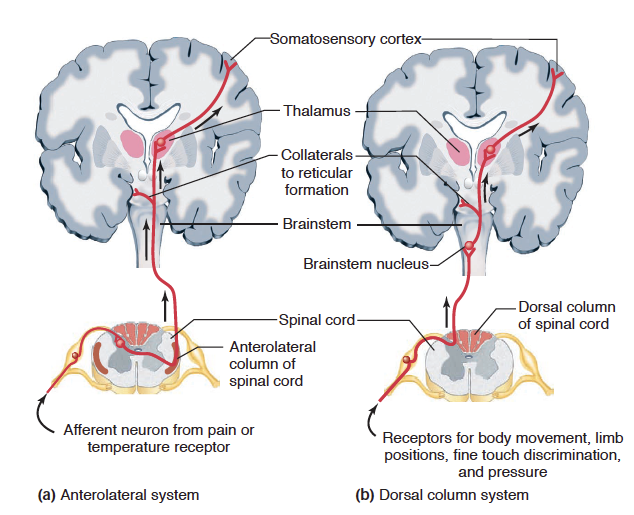 상행로는 전측경로(anterolateral pathway)와 배주경로(dorsal column pathway)가 있음.