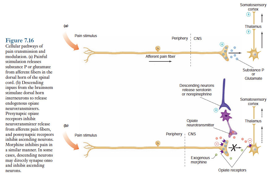 경우에 따라서(통각) 구심성 입력이 지속적으로 어느정도 억제되기도 한다. 이것은 감각조절의 유연성을 제공하는데, 억제를 제거하여 신호전달을 더 강화시킬 수 있고 아니면 추가적인 억제에 의해 신호를 완전히 차단시킬 수도 있다.