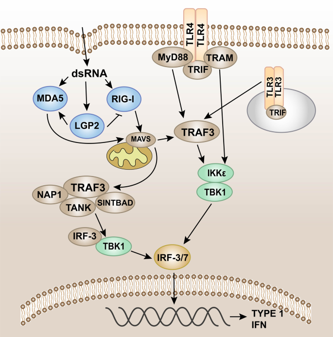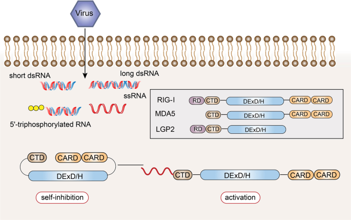 RLR은 선천성 면역 체계에 의한 바이러스 감염 인식에 관여하며, 그 작용제에는 폴리 I: C.99 연구에 따르면 에너지 대사와 선천성 면역 간의 연관성이 밝혀졌으며, 젖산이 어댑터 단백질 MAVS를 표적으로 하여 RLR 신호 전달의 자연적 억제제로 작용할 수 있음을 시사합니다.458 최신 연구에 따르면 전이성 및 낮은 면역원성 종양에 대해 알파선 방사선 치료를 시행하기 전에 RIG-I를 활성화하는 것이 종양 성장과 전이를 억제할 수 있는 보다 효과적인 병용 치료 기법입니다.459