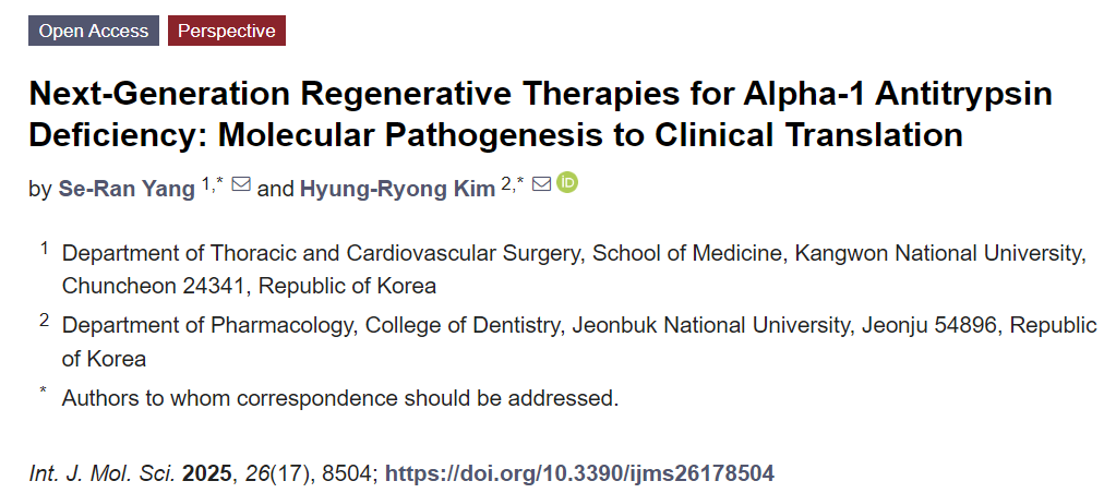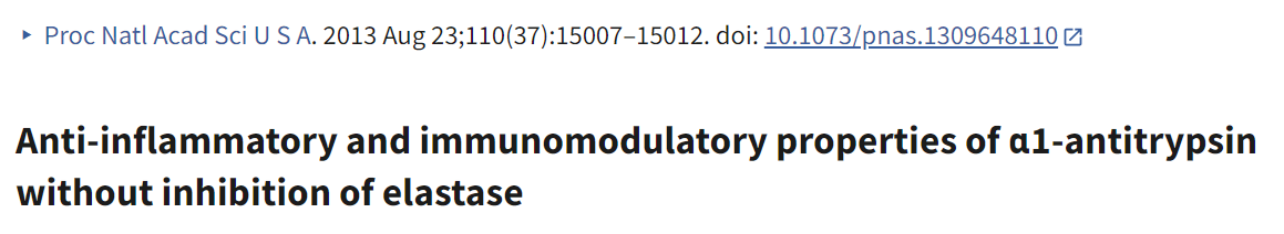 5. 고인용: "Anti-inflammatory and immunomodulatory properties of α1-antitrypsin" (PNAS, 2013, IF ~12, 인용 ~500회 이상)