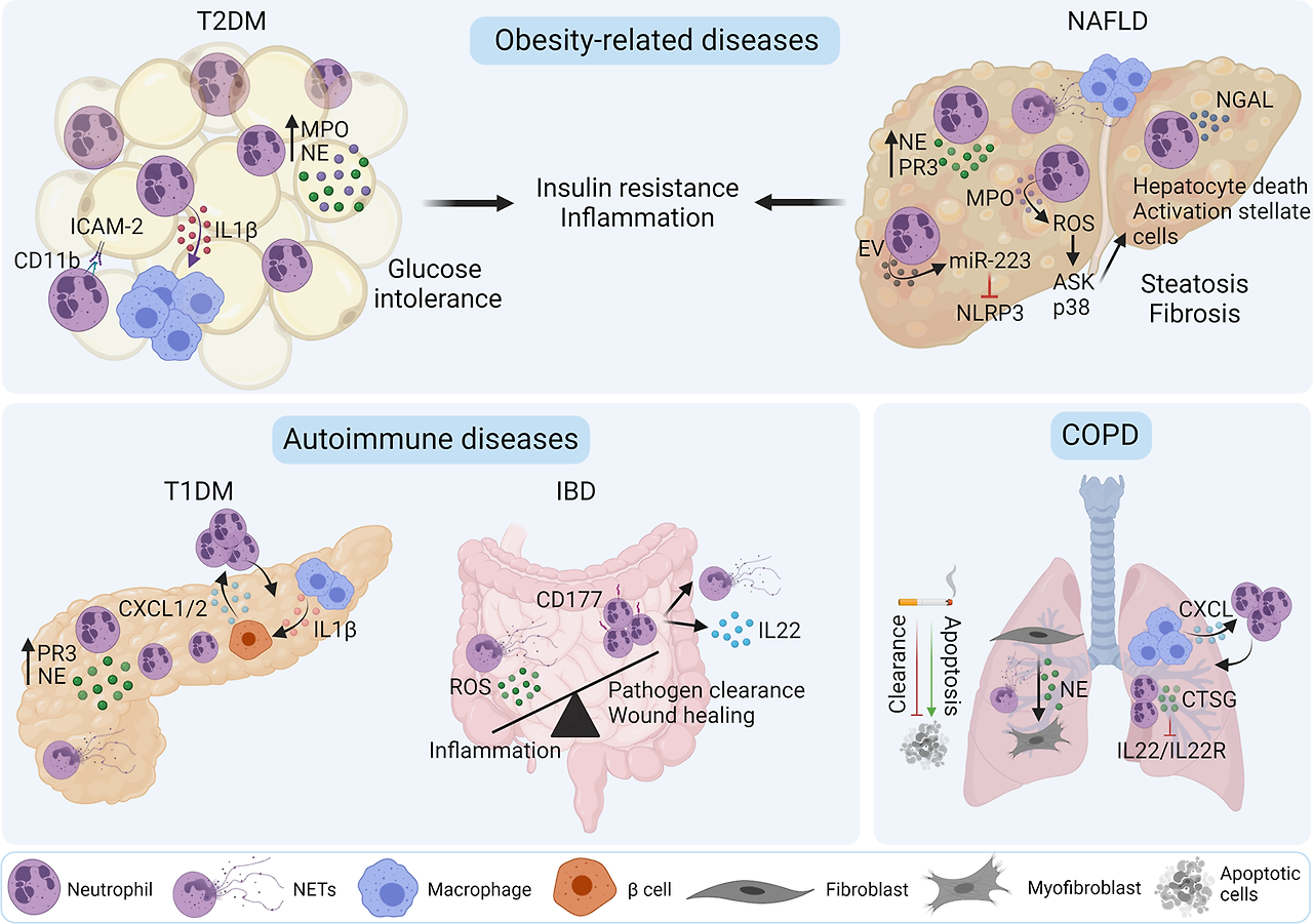 중성구가 만성 염증(예: NAFLD, T2DM, COPD, IBD)에서