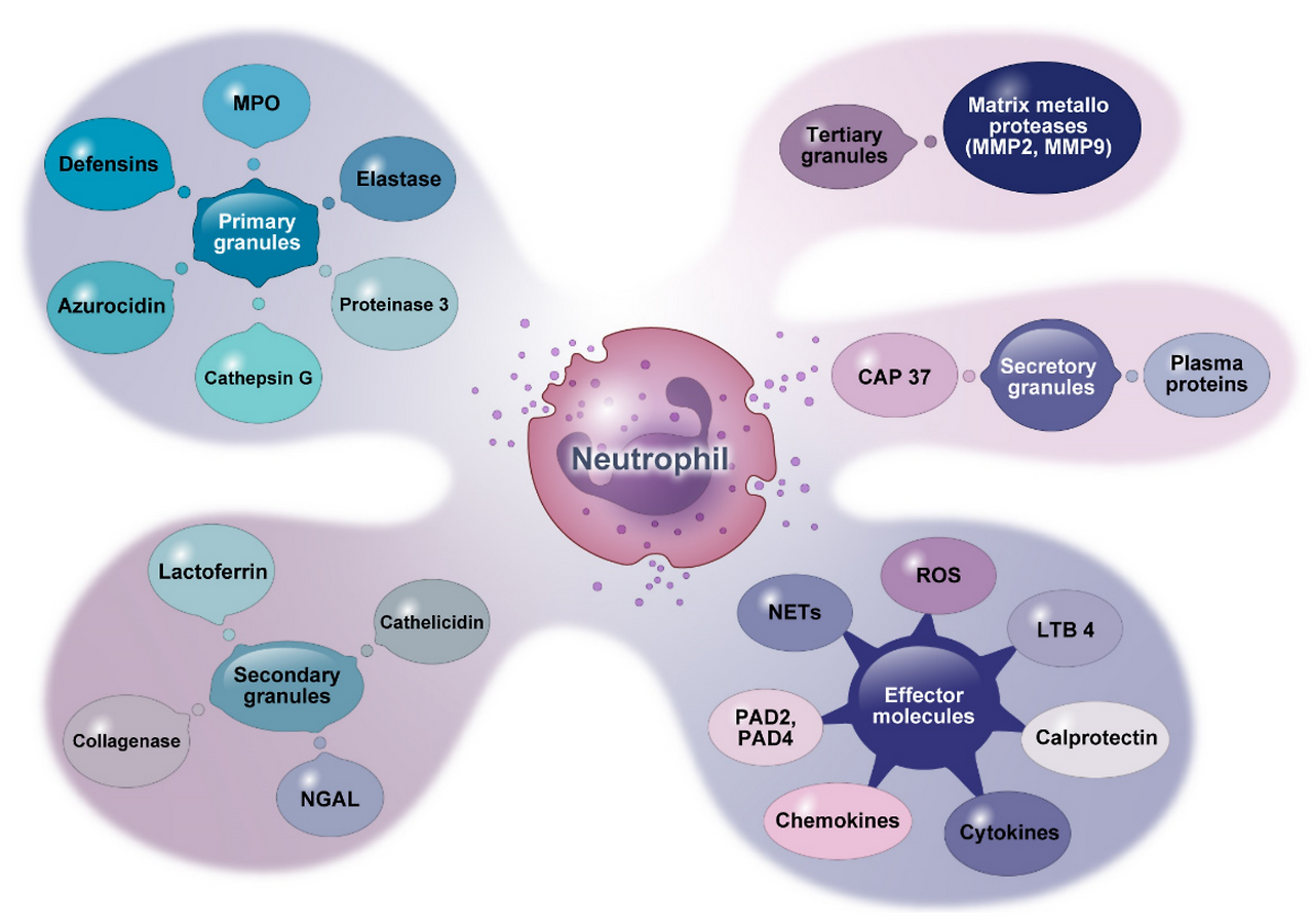 과립 내용물(예: NE, 미엘로퍼옥시다아제(MPO), NGAL, 카텝신 G(CTSG), 프로테아제 3(PR3))과