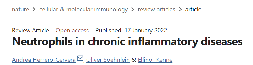 1. 최신 & 고영향력: "Neutrophils in chronic inflammatory diseases" (Nature Cellular & Molecular Immunology, 2022, IF ~25, 인용 ~300회)