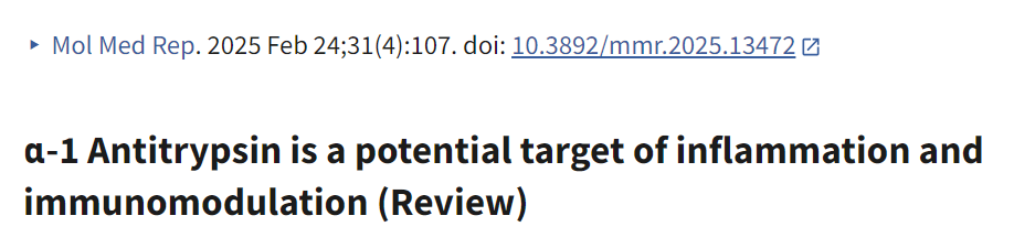 3. 최신: "α‑1 Antitrypsin is a potential target of inflammation" (Molecular Medicine Reports, 2025, IF ~3, 신규)