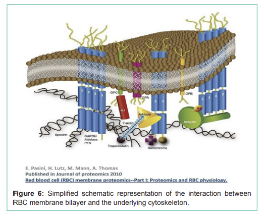 The decrease of RBC deformability is mainly due to skeletal architecture and remodeling of the RBC membrane as a consequence of ageing and the current available methods to study such parameter include rotational viscometers [16] and ektacytometry [17]. However, these techniques do not take into consideration the heterogeneity or size differences within the sample population of RBCs. For this reason, flow cytometry has become a very useful tool in the screening of membranopathies and different approaches have been described that are intended to calculate the osmotic fragility of diseased RBCs or to measure Eosin-5'-Maleimide (EMA) binding [18]. The precision of flow cytometry measurements for non- spherical cells such as RBCs is affected by the orientation of cells as they pass through a light source. This is especially true for light scatter measurements, where nearly identically shaped cells can have significantly different scatter signals owing to the variation in the cross section of each individual cell facing a focused laser source. For RBCs this variation is further complicated by secondary light scattering effects arising from their unusual bi-concave disc shape [19]. It is known that distortions of the normal RBC bi-concave disc shape can be the consequence of aging defects in the RBC membrane skeletal architecture and new approaches to light-scattering based on the measurement of RBC orientation have been developed An example is the new generation acustophoretic orientation measurement of RBCs that may become a potentially useful tool for the more precise measurement of the effects of RBC storage and ageing [20].