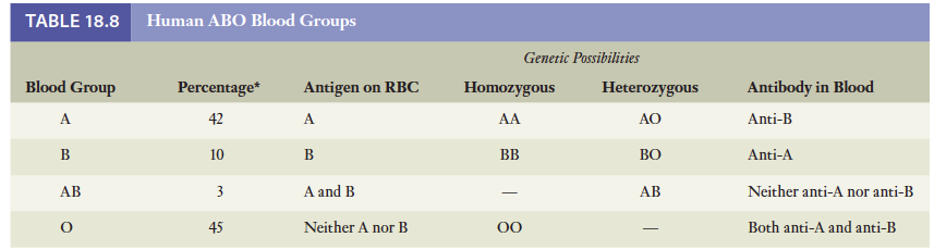 어떤 사람은 A항원을 합성하는 유전자를 가지고 있고, 어떤 사람은 B항원 유전자, 또 어떤 사람은 AB모두 또 어떤 사람은 둘 모두를 가지고 있지 않음. (유전자는 항원으로서의 기능을 하는 탄수화물을 직접 만들지는 못하고, 탄수화물의 합성을 촉매하는 효소를생산함). 이 두 종류의 유전자 모두를 가지고 있지 않은 적혈구를 O형 적혈구라고 함. 따라서 생성될 수 있는 혈액형은 A, B, AB,O형이 됨. 아래 그림