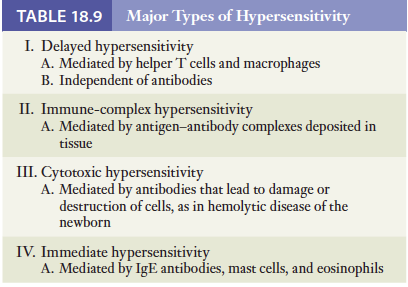 과민증은 염증반응을 포함한 서로 다른 면역학적 효과경로에 따라 네가지 형태로 나뉨. 우리가 통상적으로 사용하는 알레르기라는용어는 IgE 항체에 의해 매개되는 이들 중의 하나임. 그러나 여기서 우리는 넓은 의미로서의 과민증과 동의어인 알레르기라는 용어를 사용할 것임. 특정 알레르기로 발전하려면 유전적으로 알레르기에 걸리기 쉬운 경향이 있는 사람이 일차적으로 알레르겐에 노출되어야 함. 이 첫번째 노출은 감작화를 야기함. 이어 후속으로 알레르겐에 노출되면 해로운 면역반응을 불러일으켜서 우리가 질병으로 인식하게 됨. 알레르기 반응의 다양성은 서로 다른 면역학적 경로를 거치게 함. 알레르기 질병은 이러한 기전을 근거로 분류함. 아래 표. 지연성 과민증, 면역-복합체 과민증, 세포독성 과민증, 급성 과민증
