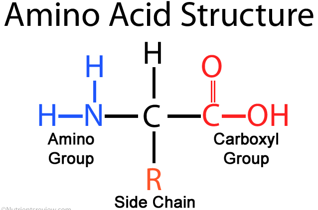 단백질은 아미노산이라고 불리는 작은 단위로 구성되는데 신체에 필요한 형태의 조직, 효소, 혈중 단백질 등을 형성하려면 적어도 20종의 아미노산이 필요함. 이중 9개의 아미노산은 필수 아미노산으로 체내에서 합성되지 않으므로 음식을 통해 섭취해야 함. 단백질은 펩티드 결합이라 불리는 화학적 결합에 의해 아미노산 고리로 형성되어 있으며 1g당 약 4kcal의 에너지를 냄. 단백질이 고에너지 화합물로 사용되기 위해서는 반드시 아미노산으로 분해되어야 함.