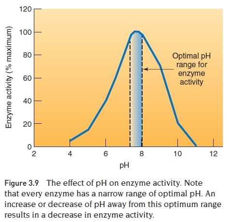 신체의 pH는 효소활동에 중요한 영향. 각각의 효소들은 최적의 pH수준을 가지고 있음. 예를들어 고강도 운동으로 근육은 젖산을 생산하며 이는 강한 산성으로 빠르게 분해되어 수소와 젖산염을 형성함. 많은 양의 수소이온이 축적되면 신체의 pH를 감소시켜 생체에너지 효소들의 최상의 pH상태를 변화시키며, 이는 골격근 수축에필요한 ATP생산을 감소시킴. 실제로 다양한 종류의 고강도 운동에서 산성화는 운동능력을 감소시키는 중요한 요인임. 10장과 19장 참조.