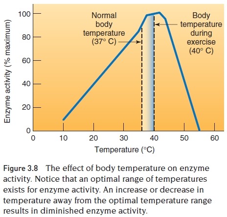 평균 체온인 37도를 넘으면 대부분의 효소활동이 증가함. 이는 에너지를 생산하는데 필요한 반응속도를 향상시켜 생체에너지인 ATP 생산을 증가시킴.