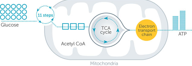 호흡은 생명체가 영양소를 분해하여 생활에 필요한 에너지를 얻는 작용을 호흡이라고 한다. 세포의 호흡은 세포내 여러 단계의 산화 과정을 거쳐 분해 되는 복잡한 과정으로 해당과정, TCA회로, 전자 전달계의 과정을 거친다. 세포에 들어간 포도당은 세포질에서 해당 과정을 거친 후 미토콘드리아로 들어가 완전히 이화된다.