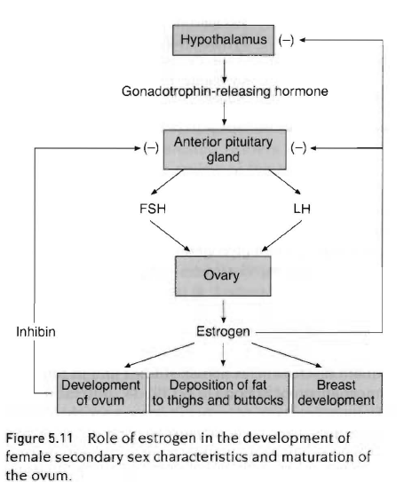 # 성 스테로이드(안드로겐, 에스트로겐) : 사춘기 이전에 성장. 안드로겐은 사춘기 이후에 여성의 성징과 관련이 있음.