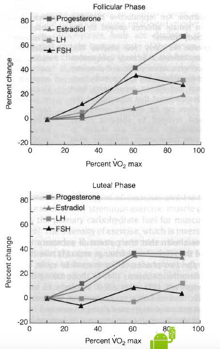 생리주기가 최대산소섭취량, 젖산, 혈장량, 심박수, 운동환기반응에 영향을 미치지 않음.
