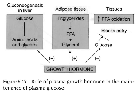 이러한 특징에 따라 운동시 혈장 포도당 농도를 유지하기 위해 성장호르몬을 증가시켜야 한다는 것은 놀라운 일이 아님.