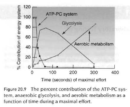 골프는 높은 에너지 산출을 필요로 하지 않지만 적적한 협응능력이 필수적임. 100미터 달리기는 훌륭한기술뿐만 아니라 높은 무산소 파워가 요구됨. 장거리 달리기에서는 높은 능력의 유산소 에너지-산출과정이 필수임.