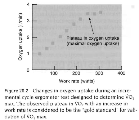 훈련되지 않은 피험자는 아래 그림처럼 최대산소섭취량의 고원에 도달하지 않는 경우가 있음.