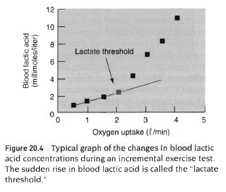 젖산 역치의 외형적인 결정은 혈중 젖산 농도가 급격하게 지속적으로 증가한 후의 지점임.