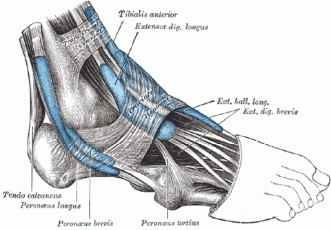 When the series of tendons from this compartment pass under the restricting strap of the retinaculum, they