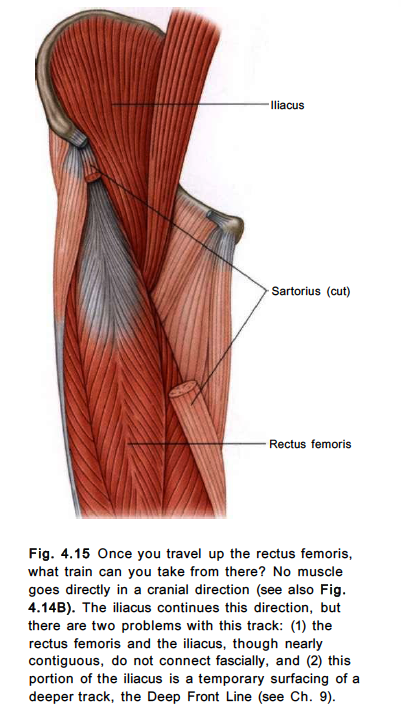 이 근막선들의 수축력있는 근육들의 연결체로 보지 않고 근막의 면을 생각해볼때, 많은 경우에 있어서 표면전방선은 반드시 아래 방향으로 이동하는 경향이 있고, 표면후방선은 위로 이동하는 경향이 있음.