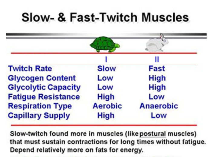 지구력이 뛰어난 표면후방선과 반응이 빠른 표면전방선과의 상호작용은 어느 한쪽이 이완되었을때 다른 한쪽에 수축이 필요한 경우에 찾아볼 수 있음.