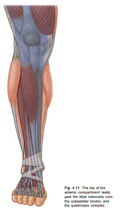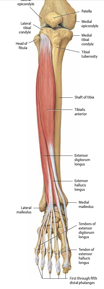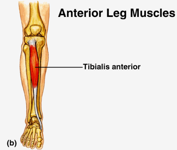 전경골근은 전방구획에서 가장 강한 근육임. 족배굴곡을 일으키고, 족저굴곡을 저지함.