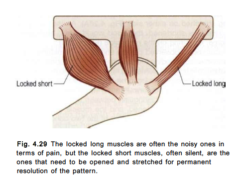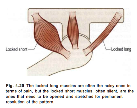 대개 길기 늘어나 고착된 근육은 통증을 호소하면 떠들썩 한 반면, 짧아져 고착된 근육은 때로 조용하다. 이러한 패턴을 해결하기 위해서는 짧아져 고착된 근육을 먼저 스트레칭해야 한다.
