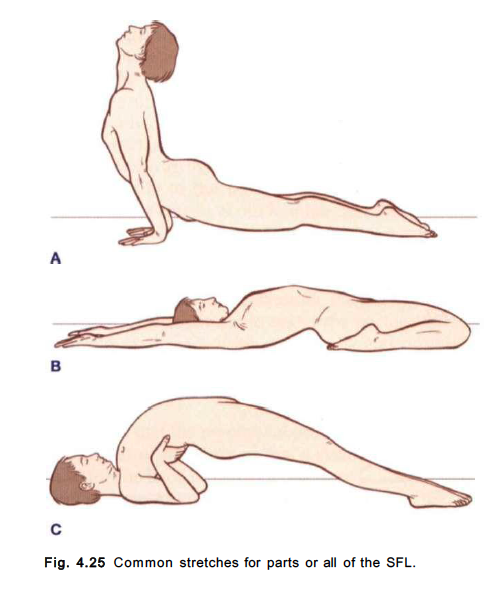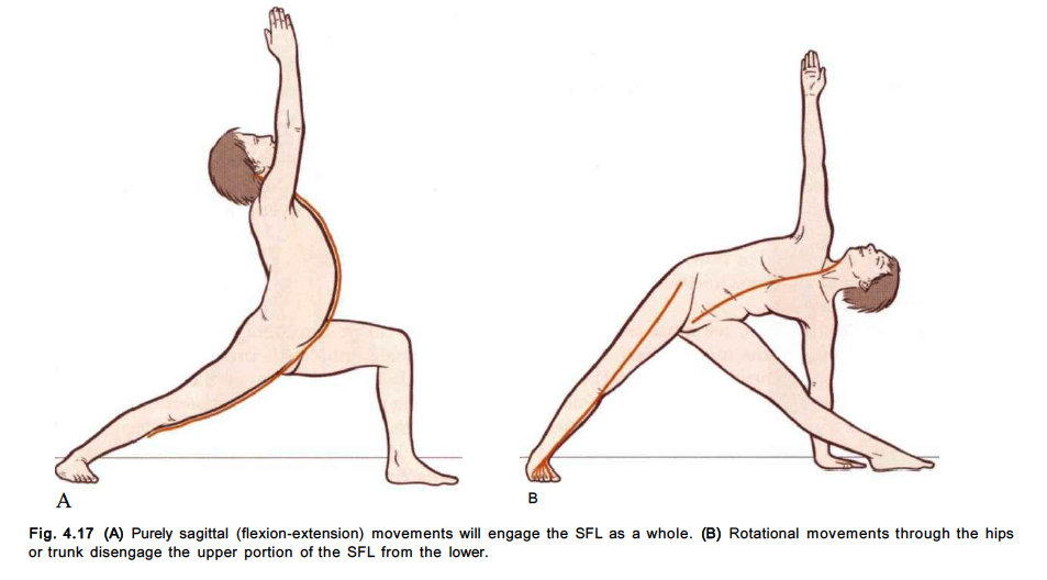 The overall movement function of the SFL is to create flexion of the trunk and hips, extension at the knee, and