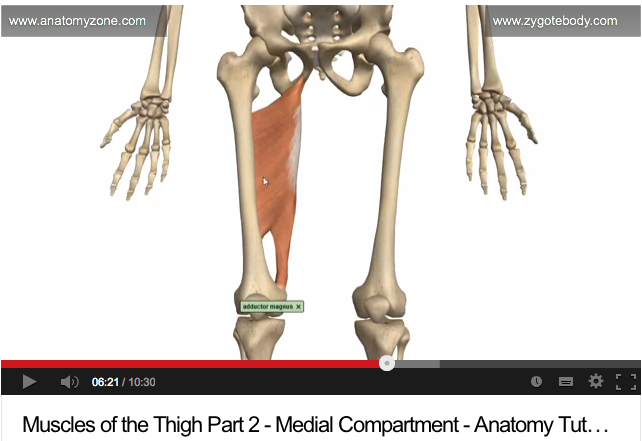 The adductor magnus is a powerful adductor of the thigh, made especially active when the legs are moved from a wide spread position to one in which the legs parallel each other. The part attached to the linea aspera acts as a lateral rotator. The part which reaches the medial epicondyle acts as a medial rotator when the leg is rotated outwards and flexed, and also acts to extend the hip joint.