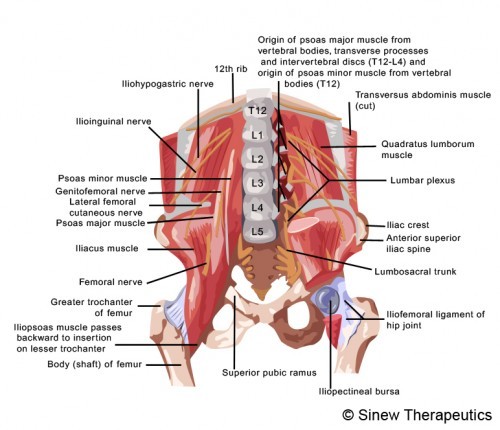 * iliopsoas 가 hip bone 에서 꺽여지는 부위.